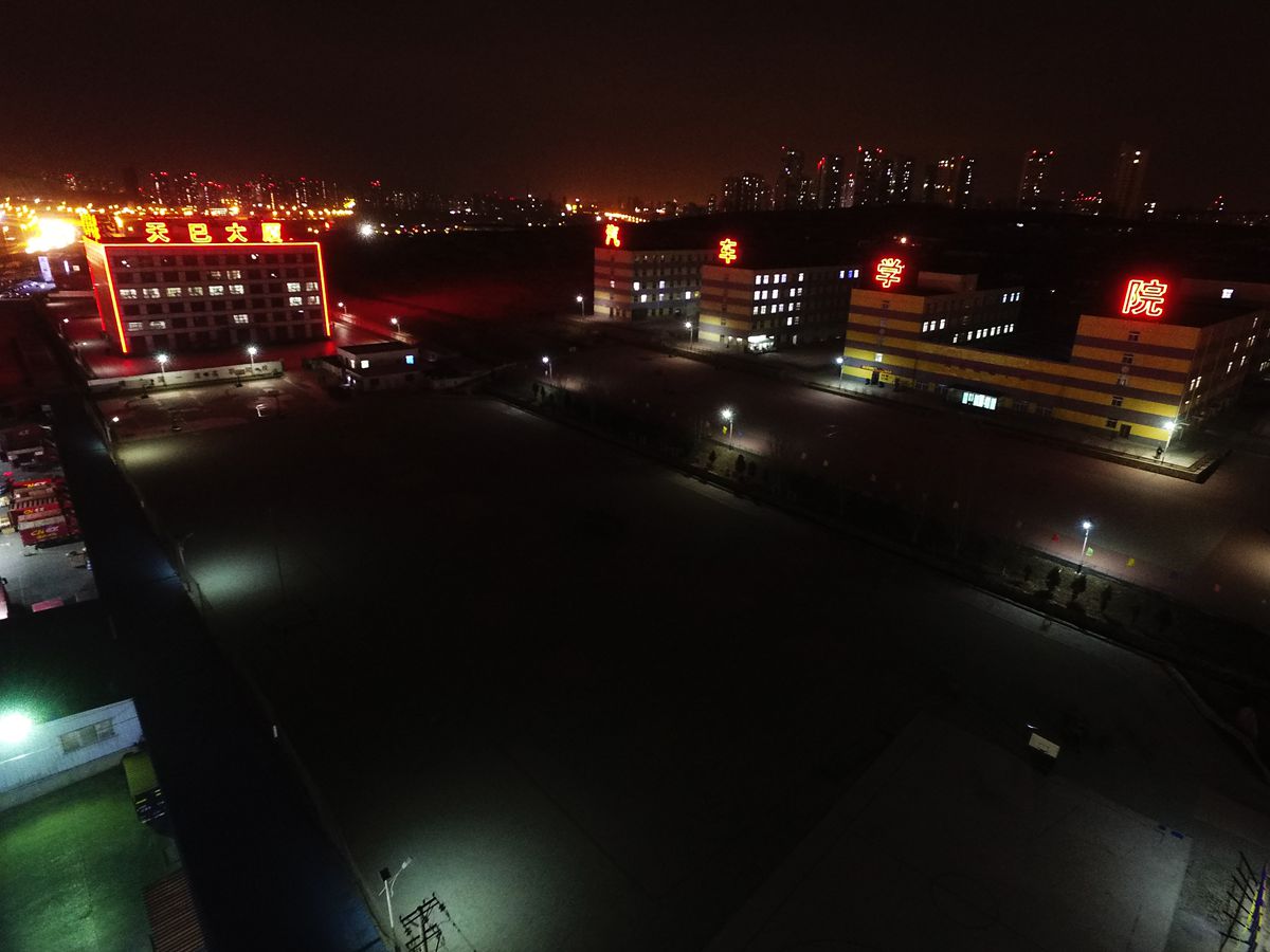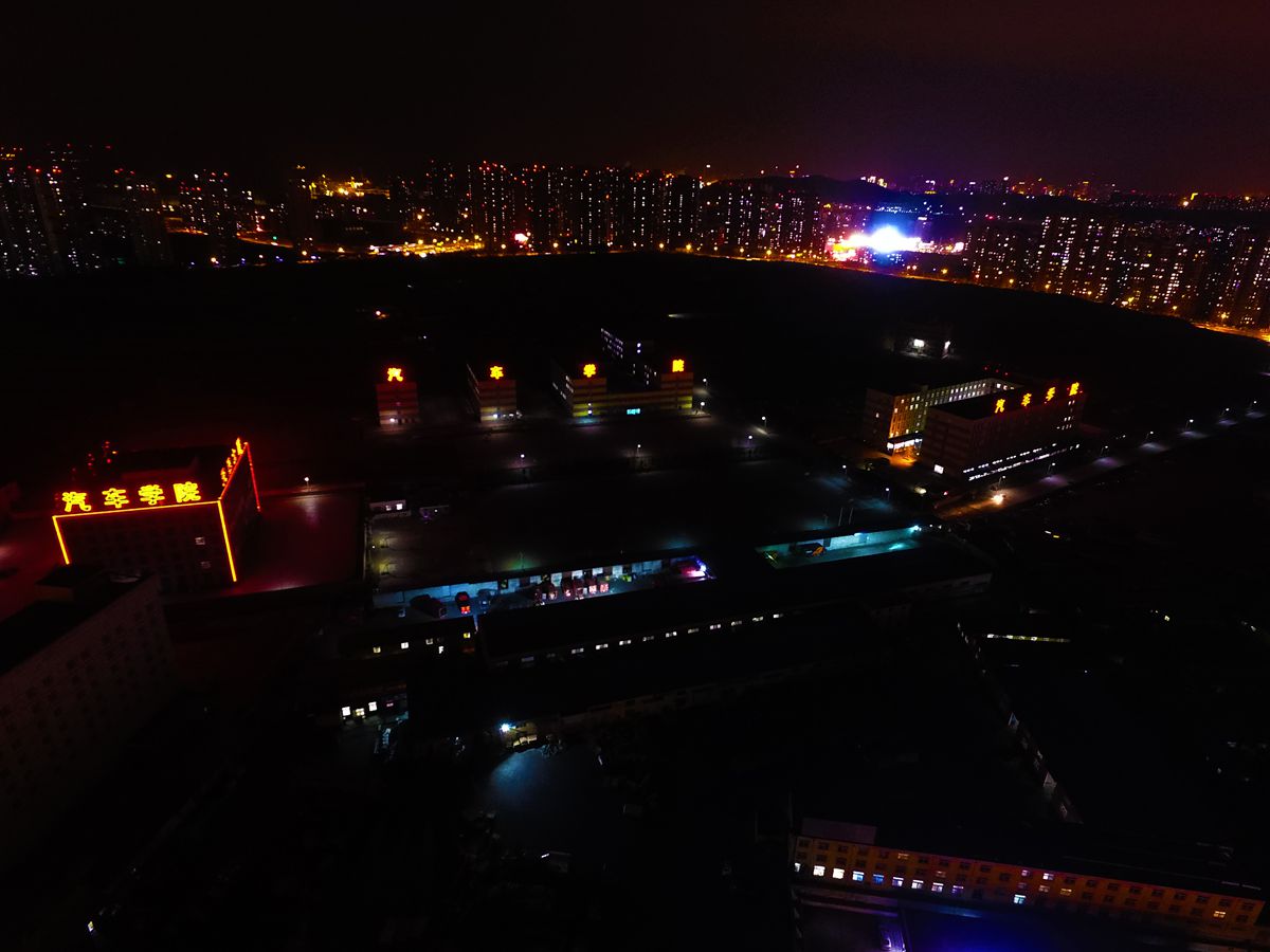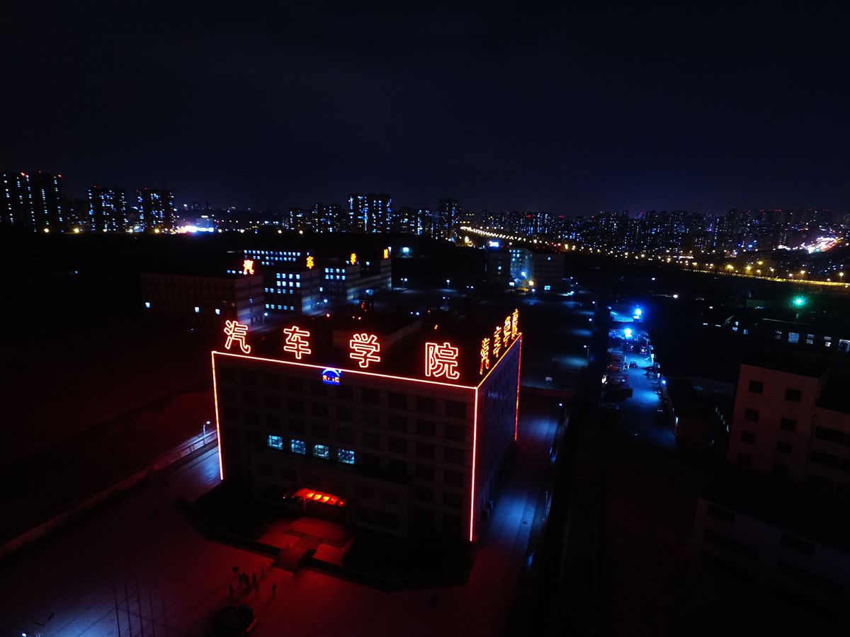 夜幕中的大连天巳汽车中等职业技术学校