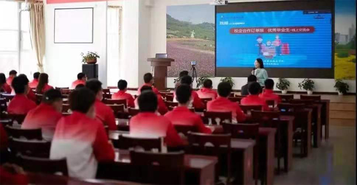 为贯彻落实全国职业教育大会精神、大力弘扬劳动光荣、技能宝贵、创造伟大的时代风尚,提升职业教育服务经济建设的能力,促进职业教育产教融合、校企合作培养合格技术技能人才,服务辽宁经济转型升级,积极营造“人人皆可成才、人人尽展其才”职业教育环境,结合我校中高职贯通教育特色,给予职业教育学生更多对于产业行业的了解,我校与高职院校(大连汽车职业技术学院)联合举行“校企合作订单班******毕业生线上交流会”。参与本次活动的人员有校领导、有关部门负责人及相关专业教师和百名在校生,活动由丁银老师主持。